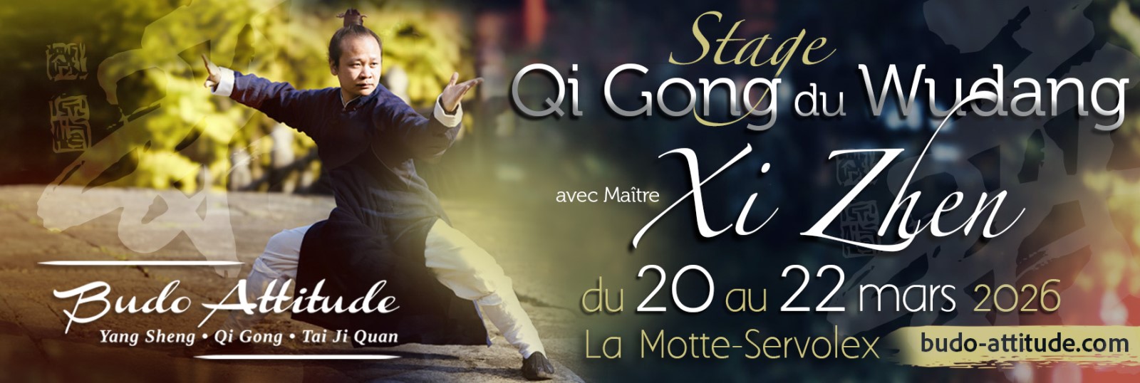 Nous avons le plaisir de vous informer de l'organisation d'un stage avec Maitre XI Zhen, en collaboration avec Les Temps du Corps, du 20 au 22 mars 2026 à La Motte Servolex, pour un stage consacré aux arts martiaux du Wudang: