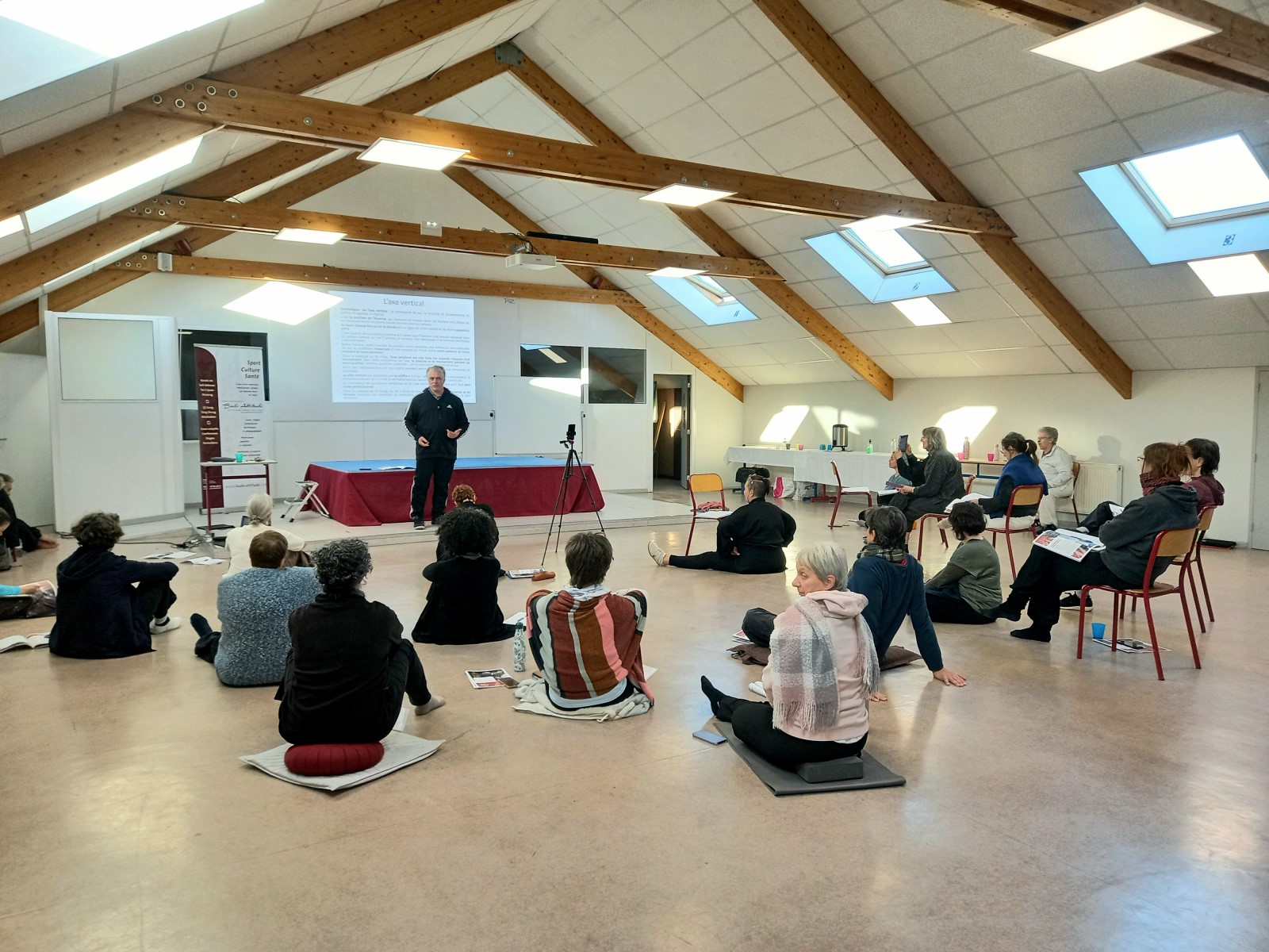 Le stage est structuré en deux parties avec un temps de partage sur la pratique, lors d’une pause autour d’un thé.
