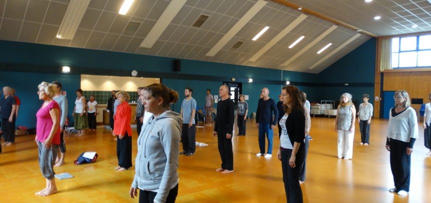 La 2e année de formation en Qi Gong et méditation a repris avec dynamisme avec la première session de 3 jours avec Ke Wen. Du vendredi 30 septembre au dimanche 02 octobre 2016, les élèves venus de toute la région Rhône-Alpes se sont rassemblés autour de Ke Wen et Romain Bussi pour venir approfondir leur Qi Gong. La notion de souffle a été abordé, un système plus profond de l’élaboration du geste de Qi Gong ou corps, cœur et conscience se mêlent pour exprimer le meilleur de nous-même. Maître Ke Wen a proposé aux élèves un travail spécifique afin de laisser passer en profondeur le souffle et de permettre au corps de trouver de nouveaux liens entre le haut et le bas du corps, de retrouver de nouveaux espaces en permettant une plus grande liberté dans l’expression du mouvement de Qi Gong. Une révision et un approfondissement de la méthode « Qi Gong des huit brocarts de soies » a été introduite par Maître Ke Wen en début de stage. Mais c’est avec une immense joie que les élèves ont découvert le Nei Yang Gong de l’école de Beidaihe en Chine pour les deux journées suivantes. Cette méthode, déjà transmises depuis plus de 20 ans par Maître Ke Wen et « Les Temps Du Corps« , connaît toujours un immense succès auprès des français que ne se lassent pas d’étudier et approfondir cet enchaînement de Qi Gong constitué de mouvements ondulatoires et un travail conséquent sur la colonne vertébrale. Une méthode qui s’exprime en pratique à travers un souffle profond et une recherche puissante dans l’enracinement du corps. Le temps magnifique de ce week end a permis au groupe de formation de pratiquer à l’extérieur au bord du Lac d’Aiguebelette et c’est à cette occasion que Maître Ke Wen a fait découvrir une marche de Qi Gong provenant des montagnes Wudang en Chine. Mr Romain Bussi a clôturé le weekend de formation avec des révisions et des explications sur les écoles de Qi Gong en Chine. Merci à tous les élèves et à l’équipe de formation pour ce nouveau weekend riche d’enseignements. Romain Bussi Programme sur le 1e weekend de 2e année de Chambéry: Apprentissage : Echauffements Nei Yang Gong 1e partie / respiration douce ( 6 mouvements), marche du Wudang, méditation. Approfondissement : 20 mouvements de Maître Ke Wen, 8 brocarts de soie, Qi Gong général